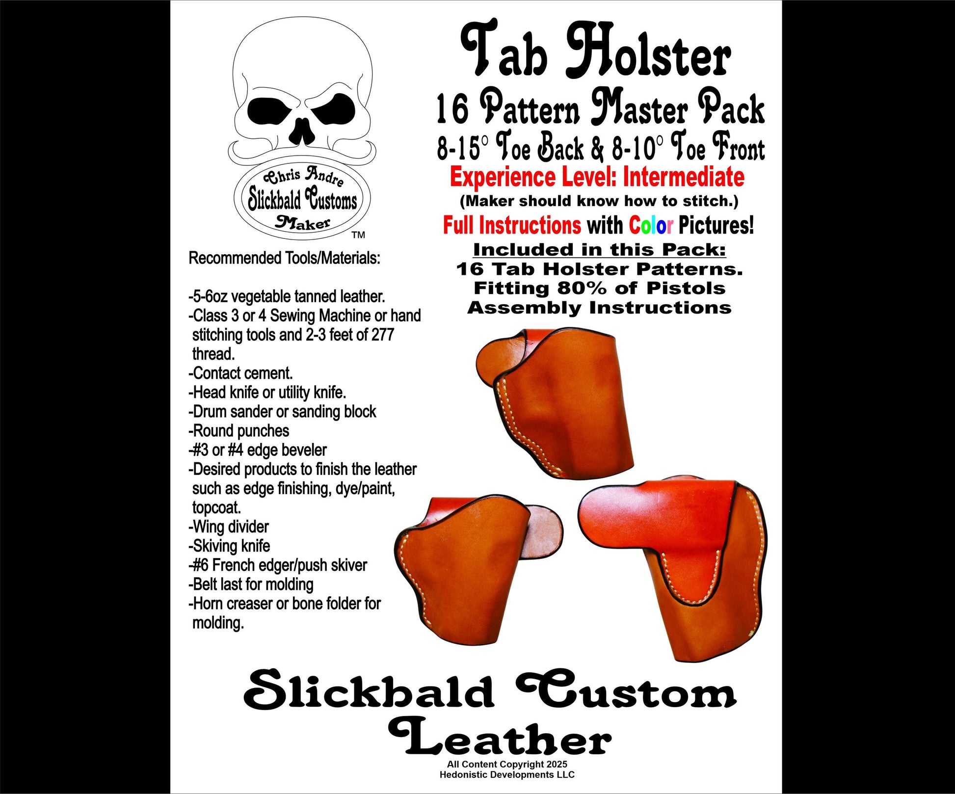 Tab Holster Pattern Pack – 10 deg. toe front for side carry & 15 deg. toe back for kidney carry.
